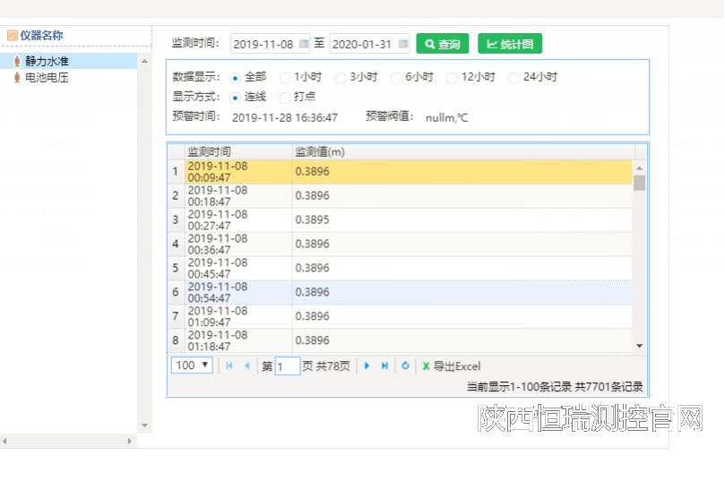 静力水准仪(连通液位沉降计)是测量两点间或多点间相对高程变化的高精密液位测量仪器,通常由缸、浮筒、精密液位计、保护罩、支撑架等部件组成。静力水准仪一般安装在被测物体等高的测墩上或被测物体墙壁等高线上,通常采用一体化模块化自动单元采集数据,通过有线或无线通讯与计算机连接,从而实现自动化观测。目前广泛应用于运营铁路沉降监测、地铁隧道沉降监测、基坑、大坝、桥梁与房屋的沉降监测以及数字矿山顶板预警等领域。